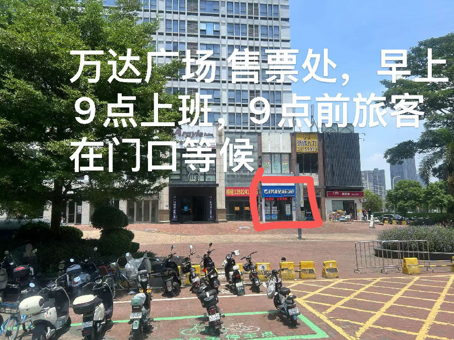 ●中天新地商场: 江门市五邑华侨广场公交车站(中天新地车库出入口旁)(11:00前验票点为中天新地商场罗森便利店门口,11:00后为中天商场中嘉纳影城楼下-携程旅游店)电话:17817857668