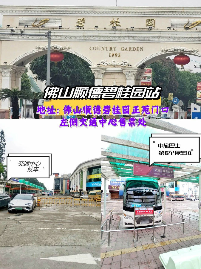 ●顺德碧桂园正苑:面对正苑门口的左手边的车站,找中旅巴士