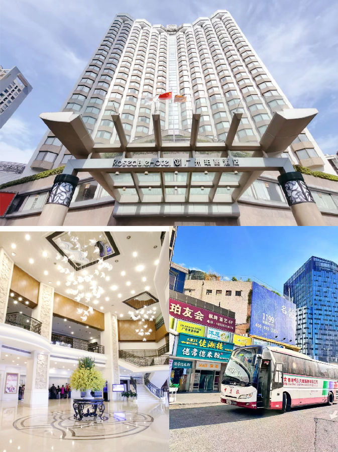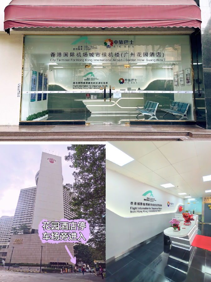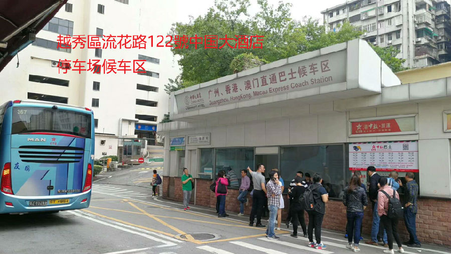 ●中国大酒店站:广州市越秀区流花路122号,地铁2号线越秀公园站D1出口酒店内停车场候车区(13925100582)。