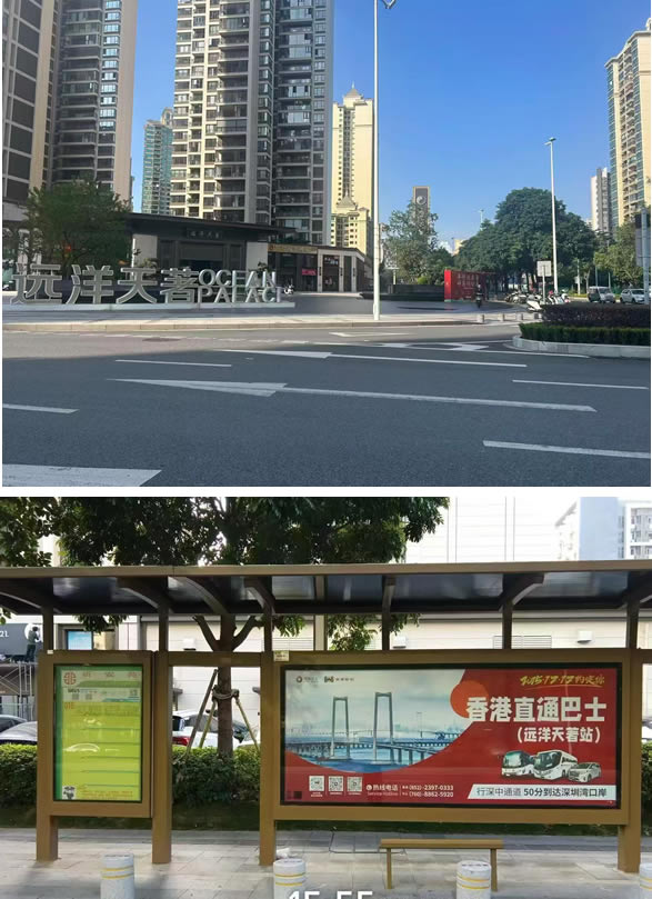 ●南区远洋天著:中山市南区永安一路(祈安苑西公交站远洋天著一期侧),公交站牌候车,中旅荣利巴士