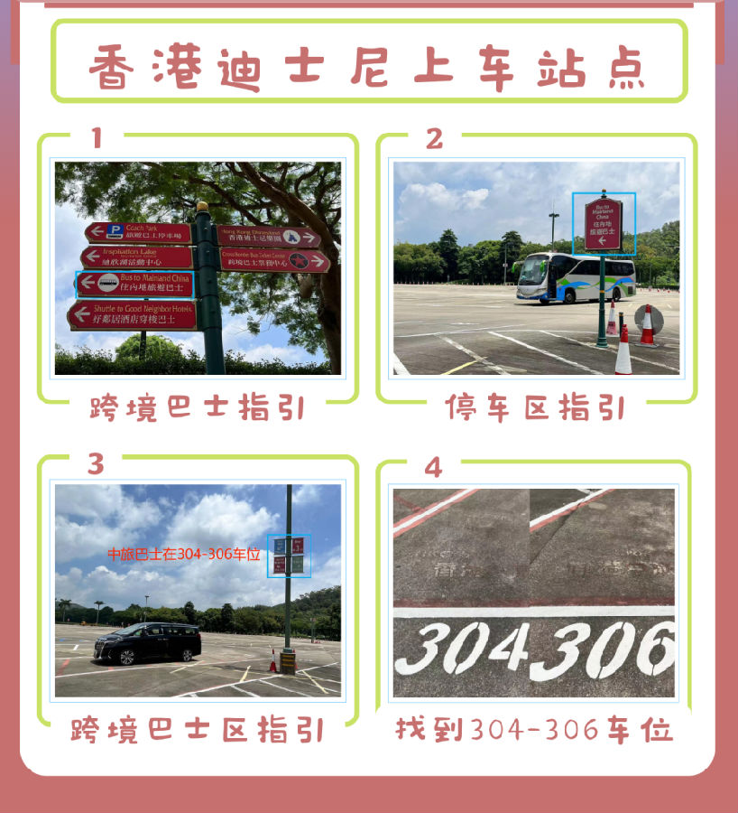 ●香港迪士尼乐园:香港迪士尼乐园跨境巴士停车区304-306车位